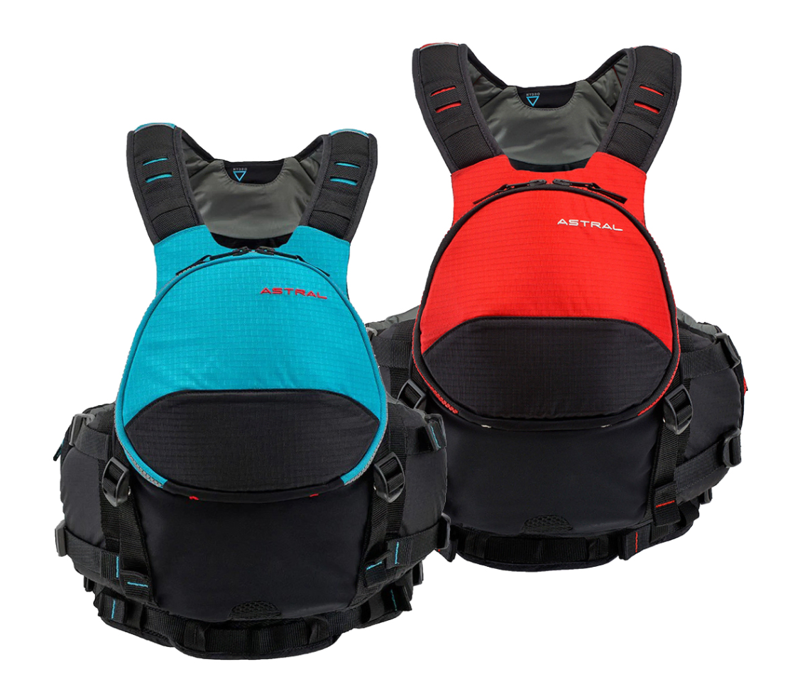 The Astral Blue Jacket is a sea kayaking-inspired personal flotation device (PFD) designed for touring paddlers who want both performance and comfort on the water. It’s lightweight with a slim profile and uses PVC-free Gaia® and PE foam for buoyancy, giving a balance of safety and mobility. The design includes thoughtful details like a side-release buckle entry, multiple organized pockets, a hydration bladder sleeve with shoulder hose routing, and foam tectonics two-panel fit that allows the front panel to move with your body for better comfort and freedom of arm movement.