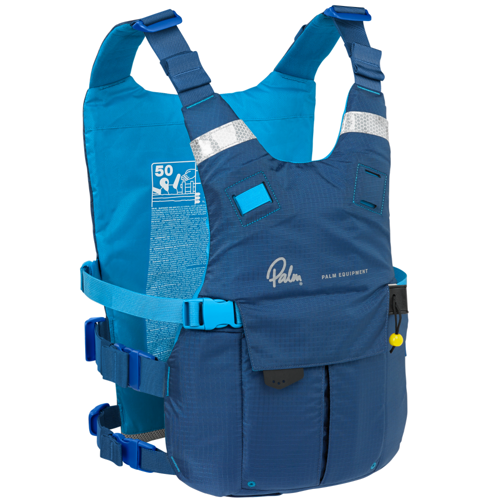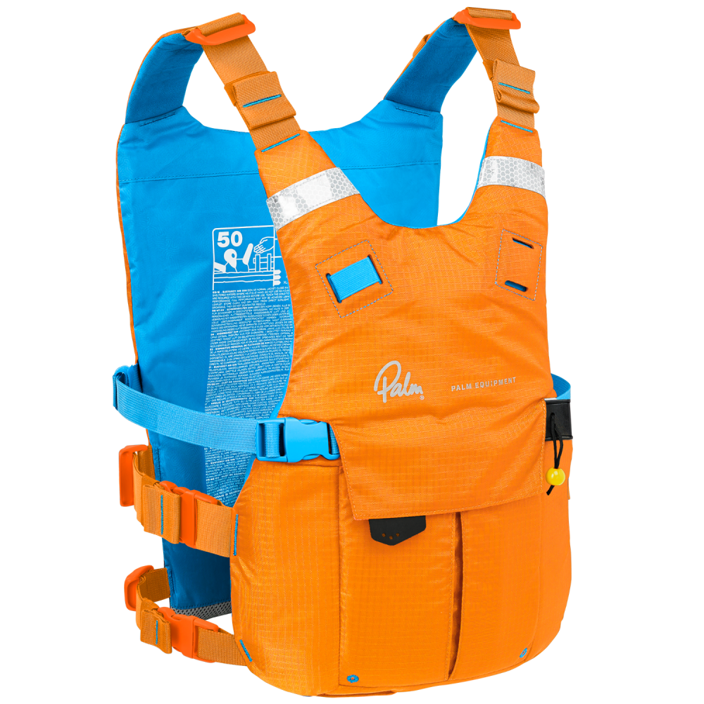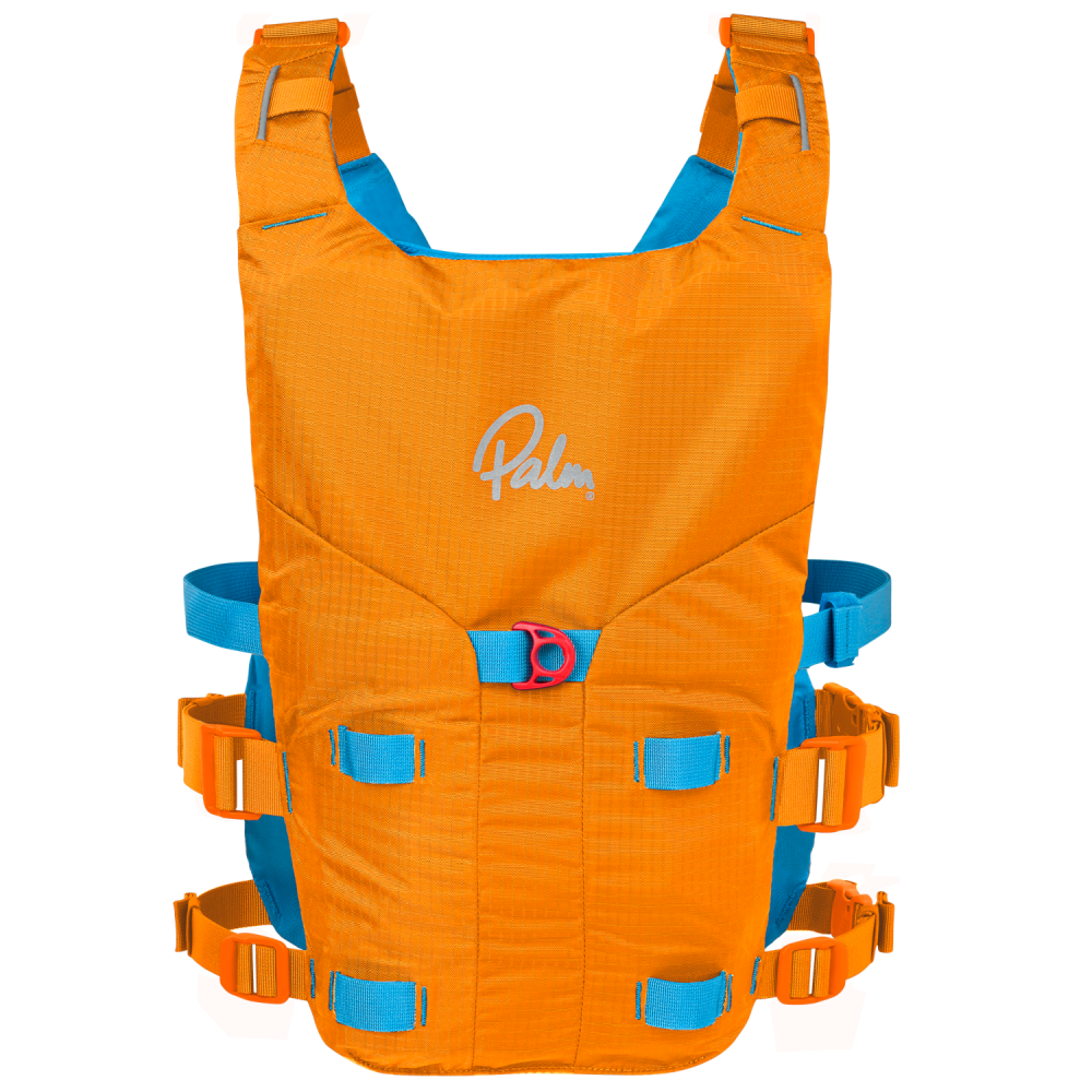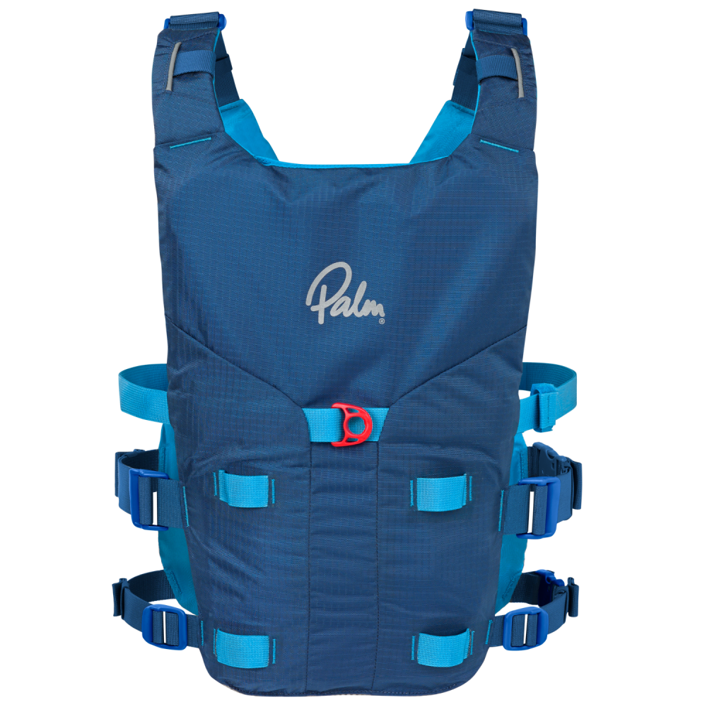 The Palm Solo Adventure PFD is a slimline, side-entry buoyancy aid that evolves the classic Solo design into a more capable touring and safety vest. The most significant upgrade is the inclusion of a high-positioned quick-release chest belt, which is purpose-built for safely attaching a SUP leash. This system, inspired by professional rescue harnesses, ensures you can instantly jettison your board in an emergency, significantly reducing the risk of entanglement or being pulled under in moving water.